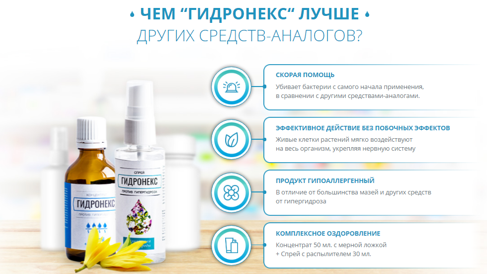 Відносно нове і від того поки не всім відомий засіб гидронекс від пітливості, яке позиціонується виробником як ефективний препарат, здатний вирішити проблему гіпергідрозу всього за один курс використання. Автори чудодійного засобу запевняють, що після проходження курсу лікування зникне пітливість, а її місце займуть гарний настрій та впевненість у собі.