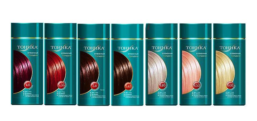 Відтіночний шампунь Тоніка пропонує широкий вибір кольорів, в які можна пофарбувати локони – темні, світлі, червоні. Кінцевий результат безпосередньо залежить від початкового кольору і часу витримки фарбувального пігменту: