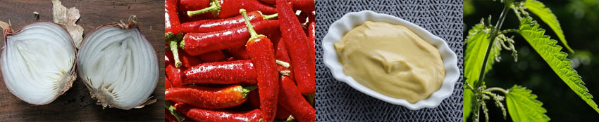 • Гірчичні припарки. Гірчичний порошок (1 ст. л.) змішують з 40 мл реп’яхової або касторової олії, залишають на півгодини до повного набухання складу. Отриману суміш добре вимішують і наносять на корені волосся. Голову покривають поліетиленовою плівкою і вкривають рушником. Суміш витримують на голові 20 хвилин, під час процедури може відчуватися печіння, варто потерпіти і не змивати складу раніше зазначеного часу. Щоб уникнути дискомфорту, наступного разу просто збільшіть кількість олії і додайте менше гірчиці. По закінченні процедури гірчичну суміш змивають теплою водою, добре промивають волосся шампунем.
