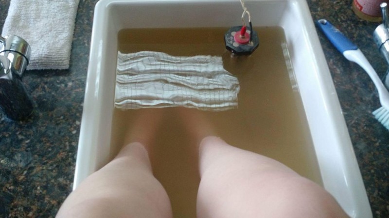 У воду краще додати засіб, яке допоможе пом’якшити шкіру. Наприклад, англійську сіль (Эпсом) .