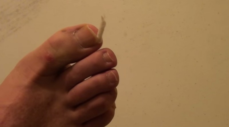 Якщо вже на цьому етапі вам дуже боляче, краще звернутися до лікаря. Якщо ситуація не зайшла занадто далеко, валик вдасться помістити під ніготь, і ви відчуєте полегшення — ніготь більше не врізається в шкіру. Залиште валик на пару днів, щоб ніготь міг відрости. Після наступної ванни для ніг замініть валик.