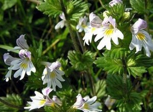 Ще один трав’яний рецепт полягає в приготуванні настою з трави очанки лікарської. Для цього береться 40-50гр очанки і заливається літром окропу. Після двогодинного настоювання суміш проціджують через марлю, після чого потрібно робити примочки для очей за допомогою ватних турунд. Можна капати по дві краплі, так і промивати очі приготованим настоєм два рази в день. Поліпшити ефект дозволить прийом всередину по два, три склянки настоянки на добу, поділяючи добову дозу на 4-5 прийомів. Курс лікування розрахований на два місяці, після чого обов’язково потрібен двотижневу перерву.