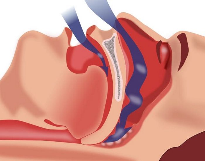 - хронічні або гострі захворювання, що перешкоджають диханню через носоглотку;