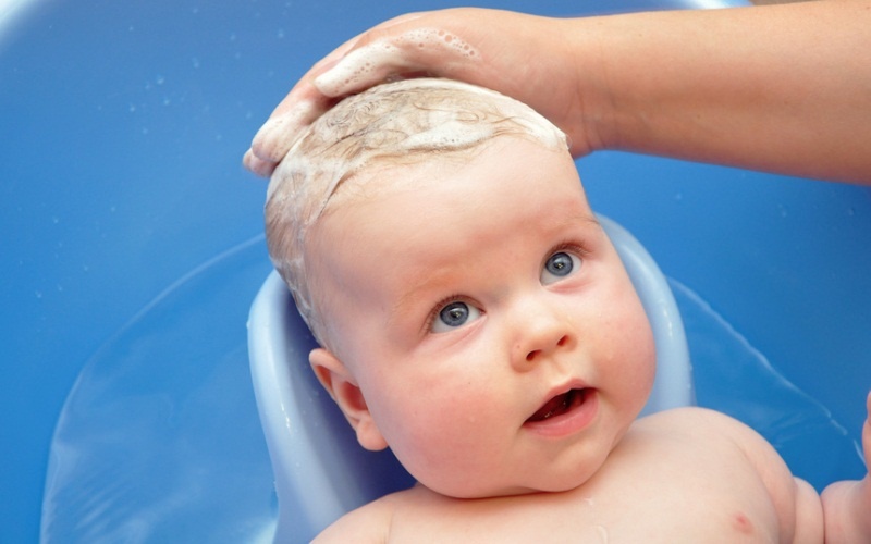 - З шампунем миють голову немовляти не частіше двох разів на тиждень, решту часу – просто водою;