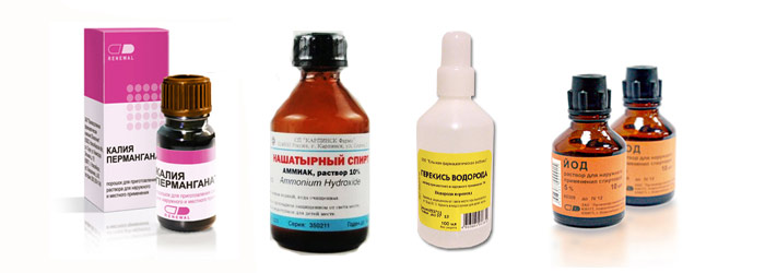 Мова йде про звичайних антисептиках, які, завдяки своїй хімічної агресивності, допомагають боротися з надмірною рослинністю: марганцівка, йод, нашатир, перекис водню та інші.
