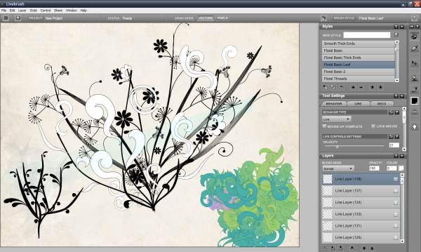 Ще одна з кращих програм для малювання на комп’ютері – LiveBrush. Головна її фішка: наявність всього одного інструменту – пензлики.