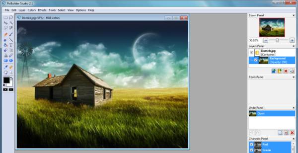 Ще одна професійна прога для малювання на комп’ютері – PixBuilder Studio. Теж схожа на Photoshop, але на відміну від попереднього варіанту підтримує російську мову.