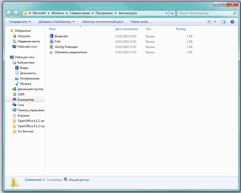 В папці «Автозавантаження» вибрати «Відкрити спільну для всіх меню»