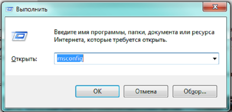Отримати доступ до Конфігурації системи» можна за допомогою командного рядка. Спочатку викликаємо вікно «Виконати», одночасно натискаючи клавіші Win (з прапорцем Windows) і R. У рядку введення (правіше «Відкрити») набираємо команду msconfig і натисніть екранну кнопку «OK».