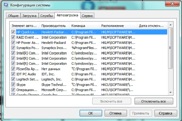 В розкрився вікні розташовані ярлички автоматично завантажуваних додатків. Видаляємо зайві, потрібні і невідомі не чіпаємо.