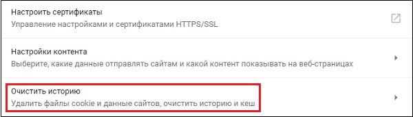 • Очистіть кеш і куки вашого браузера. Наприклад, Хром це робиться переходом в «Налаштування», внизу вибираємо «Додаткові», і знаходимо опцію «Очистити історію»;