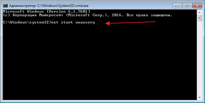 Запустимо вже знайому команду «cmd» і введемо команду «net start wuausery» і тиснемо «Enter».
