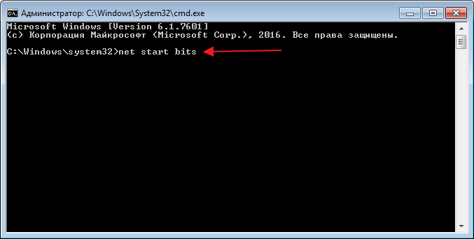 Тепер напишемо «net start bits» і тиснемо підтвердження (enter).