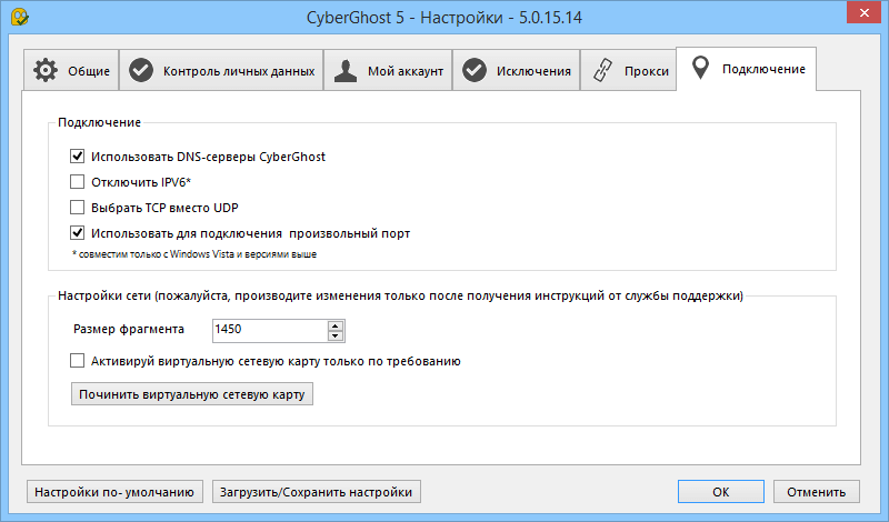 І змінити налаштування Cyberghost (налаштування російською)