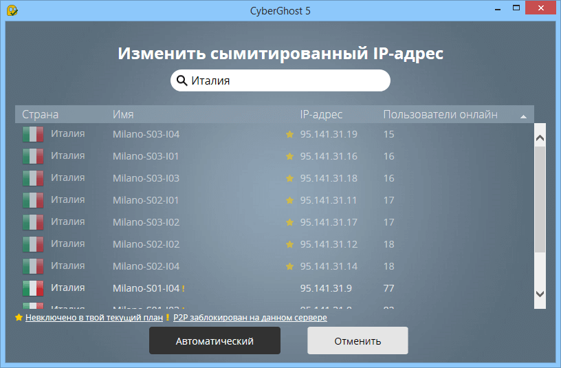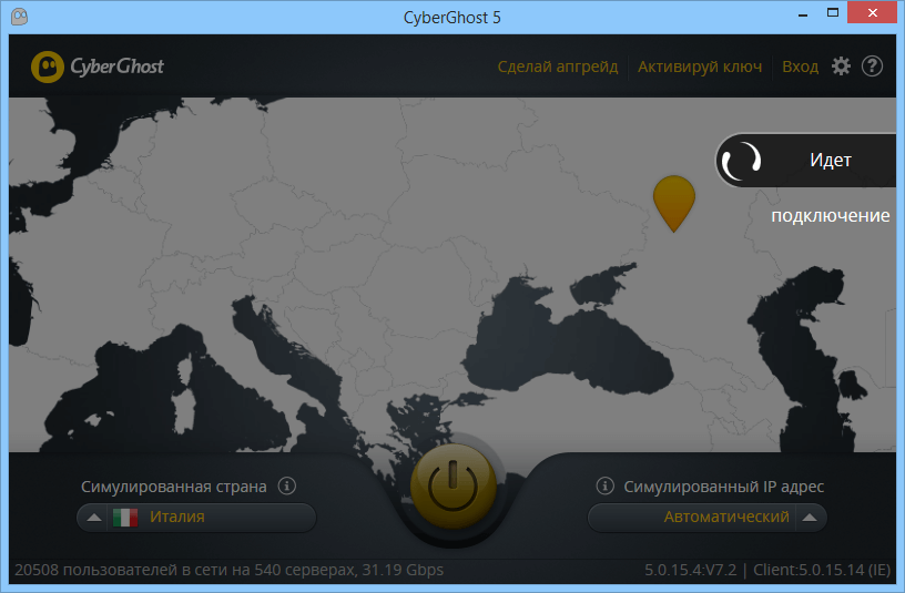 Тепер ми в «будиночку». А точніше — в італійському «будиночку».Тепер весь наш трафік буде шифруватися і передаватися через італійський сервер Cyberghost. Сайти і різноманітні сервіси будуть вважати, що ми виходимо в мережу Інтернет з Італії.