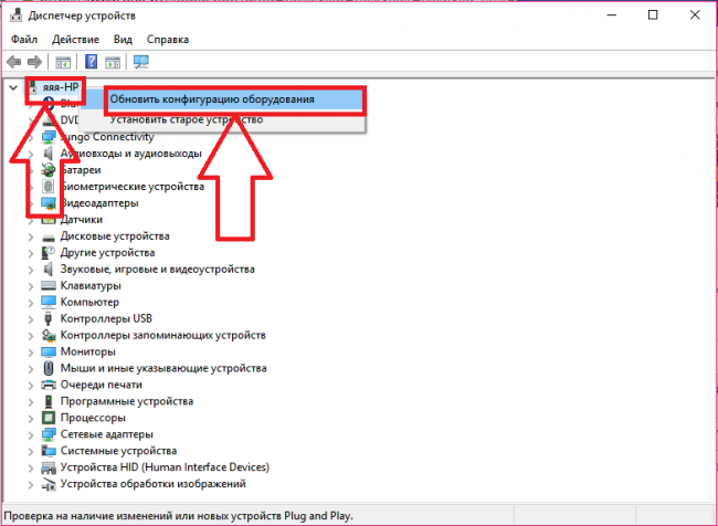 Для виконання оновлення драйверів без додаткового ПЗ, увійдіть в «Диспетчер пристроїв Windows». І знайдіть у списку свій ПК, та натисніть «Оновити обладнання». Після успішної установки перезавантажте ПК.