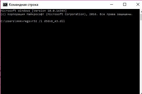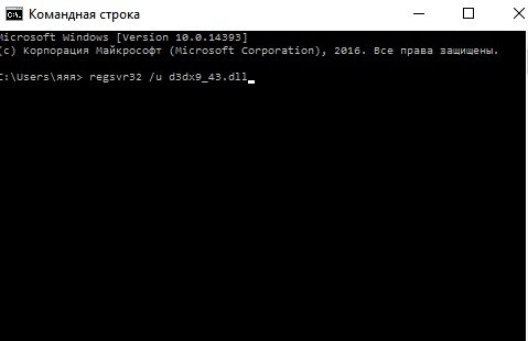 2. Введіть у вікно, що з’явилося regsvr32 /u d3dx9_43.dll, далі підтвердіть дію.