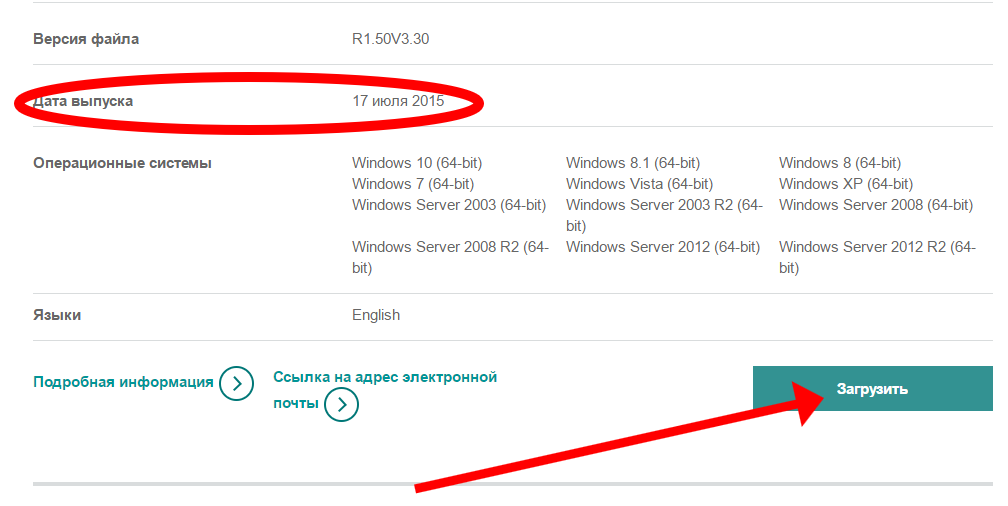 - Виберете актуальну версію драйвера, яка відповідає версії ОС.