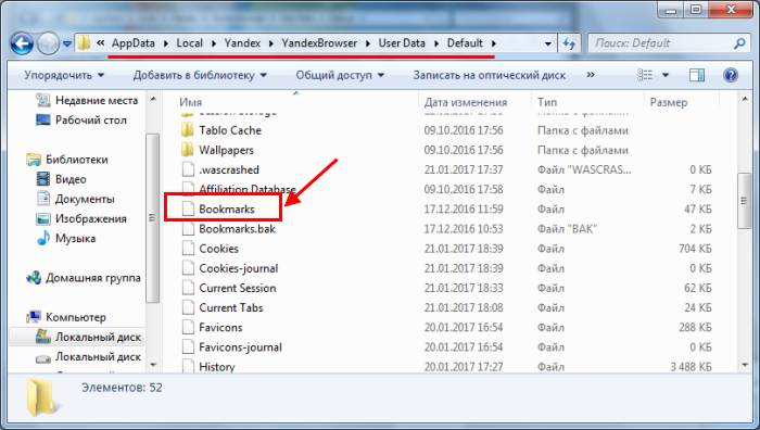Тому, щоб знайти, де зберігаються Яндекс закладки Браузера на комп’ютері в Віндовс 7: