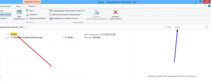 Також місцезнаходження файлу хостів можна визначити через звичайний через стандартний пошук в меню «Пуск» або в будь-якій іншій папці.