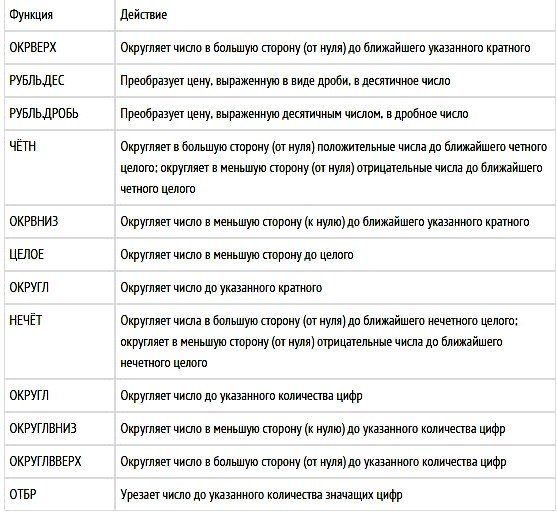 – ОТБР – використання даної функції, призводить до відкидання всіх цифр, розташованих після коми, залишаючи лише цілі значення;
