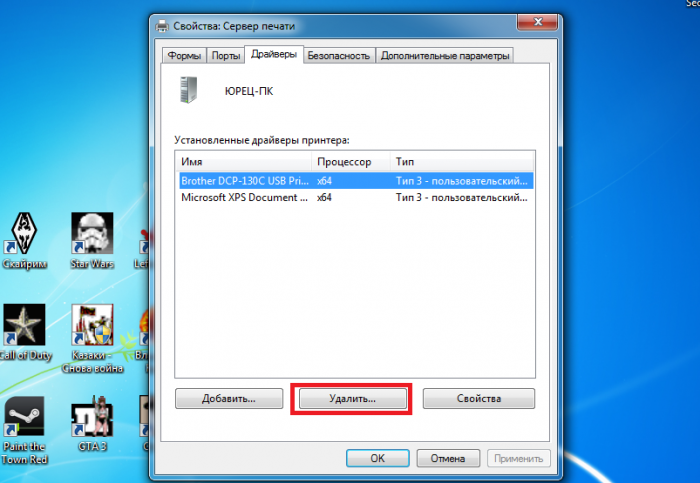 – Видалення принтера можна зробити натисканням ПКМ по його зображенню.
