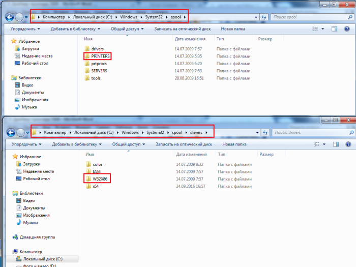 4. Знайдіть папку «Printers» і повністю очистіть те, що знаходиться всередині, папки, видаляти не потрібно;