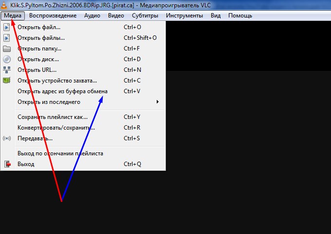 Тепер відкрийте плеєр VLC media player. У верхньому меню натискає «Медіа» > «Відкрити адресу із буфера обміну».