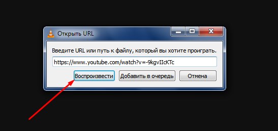 З’явиться невелике діалогове вікно «Відкрити URL». Вставити порожній рядок скопійований раніше посилання і натисніть кнопку «Відтворити».