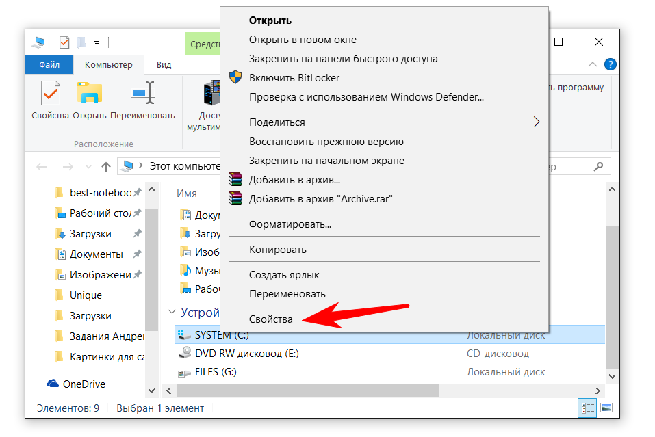 - Клікаємо на диску C: пр. кнопкою комп’ютерної мишки і вибираємо рядок з написом «Властивості».