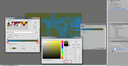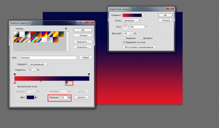 І так приступимо. Вставляємо фотографію в Фотошоп і робимо градієнт з двома кольорами: спереду повзунок на 1378ad, а той, що ззаду на 5e5c1b.