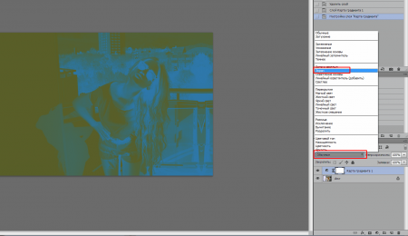 Тепер створюємо коригуючий колір, з функцією «Колір». Вказуємо значення кольору 0e072a. Знову ставимо «Екран» і прозорість вже 50%.