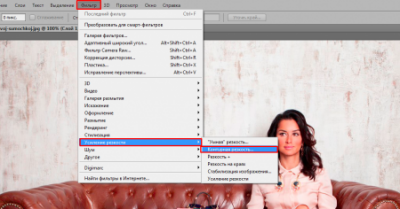 Як зазвичай починаємо з дублювання основного шару зображення. Щоб швидко це зробити натисніть комбінацію клавіш Ctrl + J. Потім застосовуємо інструмент Контурна різкість. Переходимо у ФільтрПосилення різкостіКонтурна різкість. Виставляємо на свій розсуд, мої значення вам не підійдуть, так як у нас різний розмір фотографії. Робимо так, щоб деякі фрагменти стали чіткіше видно.