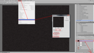 Останній крок, варто додати шум, що б вийшов ще більш яскравий ефект «старовини». Створюємо новий шар, заливаємо його чорним кольором і застосовуємо до нього Додати шум. Значення шуму ставимо як у мене.
