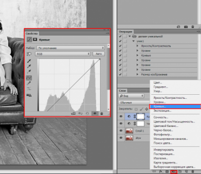 Далі тон, зайшовши в коригувальні шари і застосовуємо «Криві».