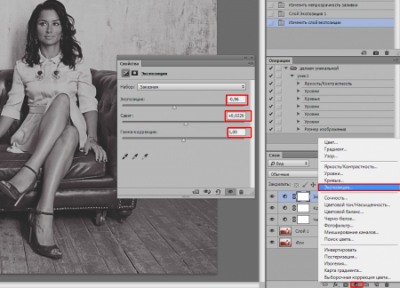 Застосовуємо коригувальний шар Експозиція і налаштовуємо приблизно значення як у мене.