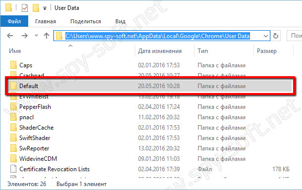 - У вікні папки з конфігурацією Google Chrome ми швидше за все не знайдемо, оскільки за замовчуванням ця папка прихована, (як приховати папки і файли в Windows: 3 способи).