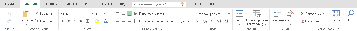 - маються вкладки Файл, Головна, Вставка, Дані, Рецензування, Вигляд з усіма супровідними до них інструментами;