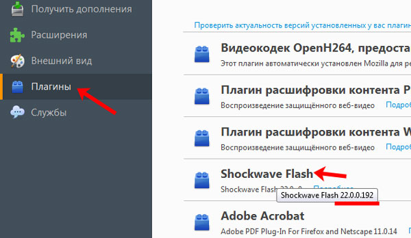 Якщо навіть після оновлення Flash-плагіна на сайтах з’являється повідомлення, що він не працює, потрібно перевірити, не відключений він в самому браузері.
