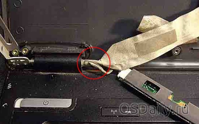 - Також буває, що в ноутбуці відходить шлейф, який сполучає монітор з основою ноутбука. Шлейф також може переломаться і знову ж вибивати чорний екран. Для цього необхідно розібрати корпус ноутбука і перевірити цілісність шлейфу, а також його контакт з платою ноутбука.