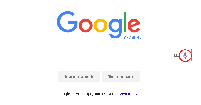 Після проведення вищезазначених операцій, перейдіть до пошукача Google і ви побачите значок у формі мікрофона, з допомогою якого можна здійснювати голосовий пошук в системі.