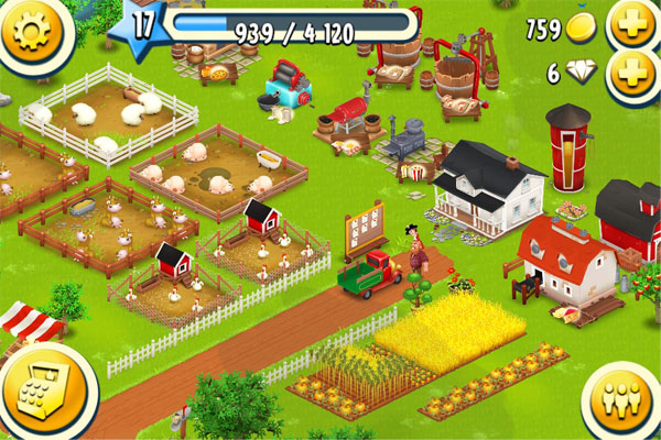Hay Day — справжня гра рай для любителів віртуальних ферм. У грі є стандартний набір тварин і рослин і всім знайомі можливості: можна випікати хліб, сидіти з вудкою біля мальовничого ставка і організувати активну торгівлю зі своїми друзями через місцевий онлайн магазин.