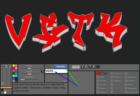 Тепер ви можете змінювати положення кожної з літер тексту, налагоджувати різні колірні ефекти, так і змінювати колір самого тексту (або окремих його частин). Загалом далі йде творча робота, що залежить від вашої фантазії.