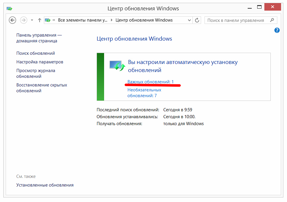 - Там натискаємо на посилання «Вибір оновлень для установки».