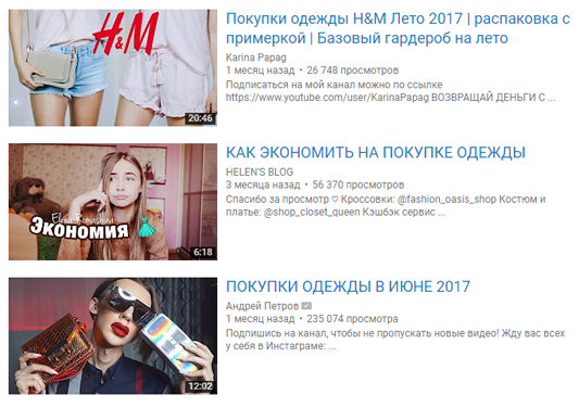 Знімайте відео про купленої вами одязі, або косметиці. Детально опишіть кожну покупку і розкажіть оригінально про неї, щоб відео вийшло цікавим і забавним. Також у своїх відео ви можете розповідати про куплених ювелірних прикрасах.