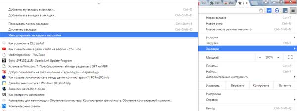 Для того щоб ним скористатися, тиснемо на вже знайоме нам меню, і з випав списку вибираємо «Закладки – Імпортувати закладки та налаштування»:
