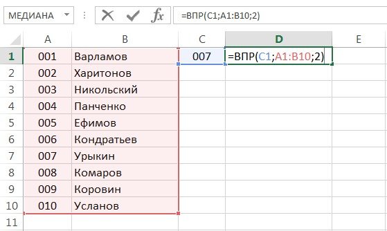 Першим аргументом є комірка, в якій перебуває змінна, що вводиться з клавіатури користувачем. З цієї комірки буде братися інформація про адреси, з якої потрібно витягнути інформацію. Другий аргумент – це безпосередньо сам діапазон, в якому буде проводитися пошук необхідного значення. А третій аргумент – число, яке покаже номер стовпця, в якому буде розташовуватися інформація, яку треба повернути.