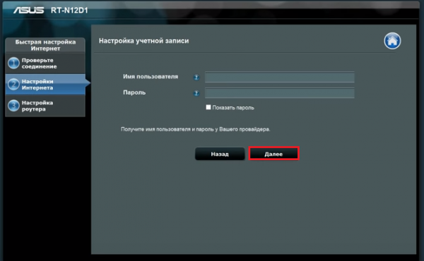 – Вказуємо логін і пароль для доступу в мережу «Інтернет». Ці дані видавалися провайдером, коли ми укладали договір про поставку інтернет з’єднання в нашу квартиру.