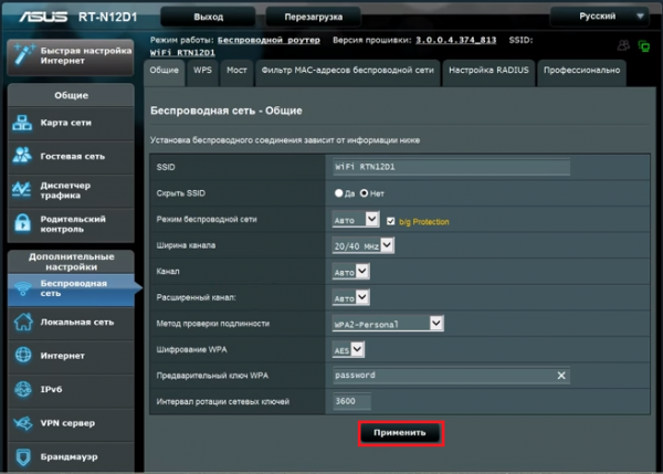 Режим бездротової мережі – тут необхідно вибрати пункт з назвою «Автоматично». Це дозволить підключитися до мережі різних пристроїв, не ріжучи їм швидкість викачування і віддачі трафіку.
