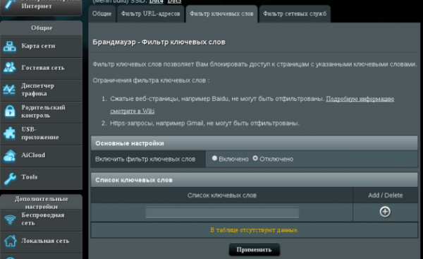 Фільтр, що накладається на ключові слова, необхідний лише в тому випадку, якщо ви хочете заблокувати доступ до сайтів, які мають якісь заборонені для вас слова.